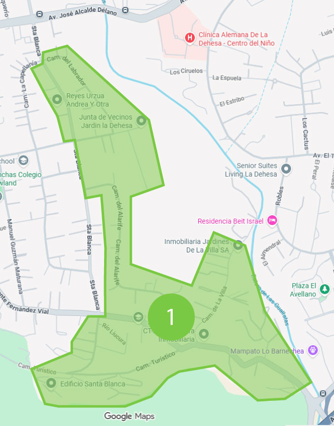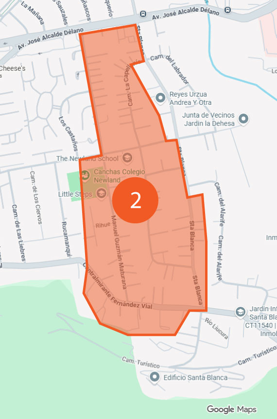 Contralmirante Fernández Vial del 10.884 al 11.284 Santa Blanca del 933 al 1591 y del 1915 al 1938 El Tranque del 11.018 al 11.197 La Capellanía José Alcalde Délano Manuel Guzmán Maturana Rihue