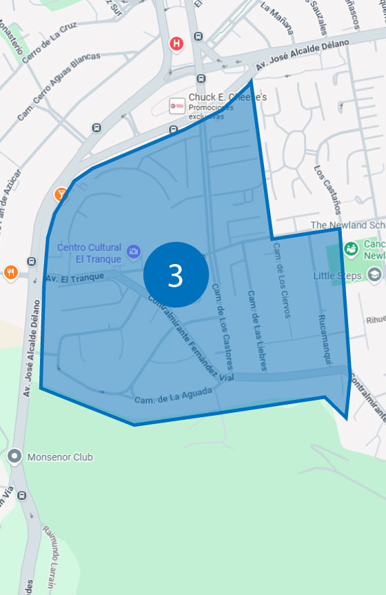 José Alcalde Délano Rucamanqui y Felipe Cubillos desde El Tranque a José Alcalde Délano Contralmirante Fernández Vial del 10.295 al 10.715 Camino de La Aguada El Tranque 10.100 al 10.679